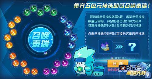 本周新推出了电系精灵泰瑞。它是萌萌的电系精灵泰尼的进化形态,强壮的身躯附带十万伏特电能的致命拳击,再配合它奇快无比的速度,无人能敌。玩家们在游戏中可以通过新活动“召唤泰瑞”来获得它。在活动中,玩家需要集齐5颗的五色元神珠,才能召唤泰瑞,五种颜色分别是黄、绿、蓝、紫、红,如果某种颜色的元神珠超过了5颗,则该颜色的多余元神珠会自动裂变成碎片。玩家们可以通过碎片合成为指定颜色的元神珠。这样,就不用担心多余的元神珠没用了。