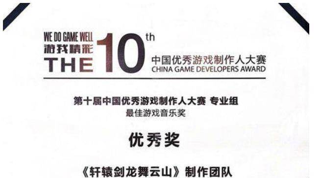 《轩辕剑龙舞云山》荣获CGDA最佳游戏原音乐奖优秀奖