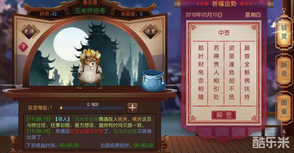 当然,祈福获得的属性值和运势值都与驭灵等级、游戏妖灵的主性格分值和亲密度有关。驭灵等级越高,抽签获得好签文几率越高。驭灵等级越高,事件和奇遇获得的奖励越多。