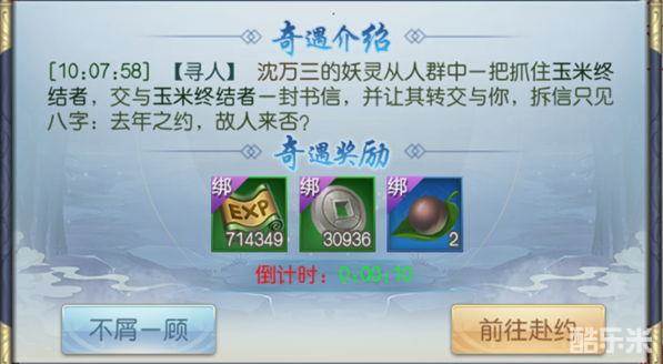 在手游中,奇遇是随机触发的。玩家不会知道什么时候将触发奇遇。触发奇遇之后,玩家可以选择“前往赴约”或者“不屑一顾”。奇遇的奖励“经验”和“铜币”等也是随机数值。在奇遇途中,妖灵会根据心情随机带回来礼物,可能是铜币、也可能是一个女朋友。至于带回什么,全看玩家的造化。《魔剑侠缘》的佛系奇遇玩法,给了玩家足够的惊喜和意外。