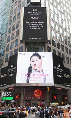 王金金此次携华为荣耀手机与《超级女声》官方手游亮相纽约时代广场,向全世界传达了《超级女声》的青春最强音!