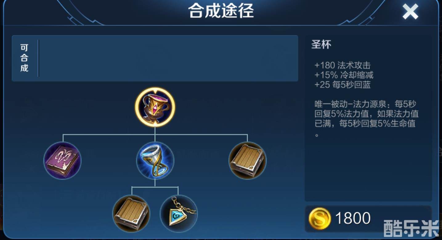 哈喽大家好,在王者荣耀众多法师辅助中有的英雄很费蓝,比如墨子、露娜、姜子牙、嫦娥,蔡文姬这些英雄的技能都是非常冷却非常短又很耗费蓝,如果在没有拿到野区蓝状态的时候,那么技能是不敢随便乱放的,几个技能蓝条就见底了,为了保证团战能达到快速支援队友,不让自己没蓝,通常我们都会出一个圣杯这件装备,圣杯虽然是件功能性的装备但是它的属性是不错的,有着180的法师攻击和减速15%的技能冷却时间,每5秒回复25点,技能被动回蓝更是爆表了,有了这件装备根本就不用担心没蓝的问题,但是这件装备跟其他的核心法师装备比起来稍微逊色了一些,因为我们法师是需要打输出的,只有功能是不行的,并且在前期攻击的成长是有利整局的顺风逆风的,所以出这个装备就会有点拖节奏,毕竟这件装备需要1800经济,下面给大家推荐这件装备,和这样的搭配也有着很好的回蓝效果并且性价比更好一些。