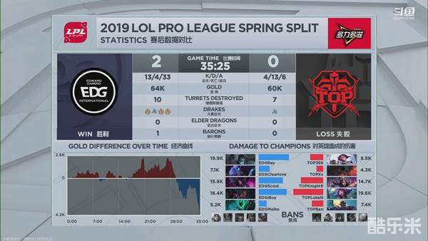 最终,EDG再度拿到大龙,摧毁TOP三路拿到比赛的胜利,首局EDG先下一城!