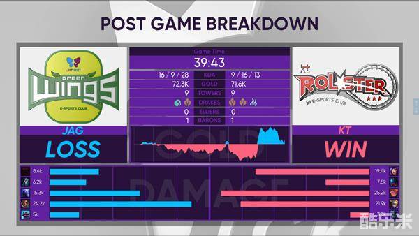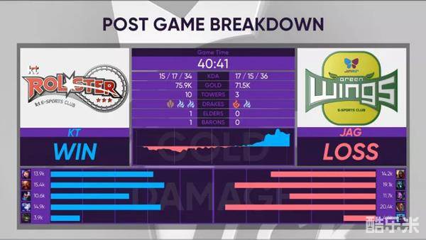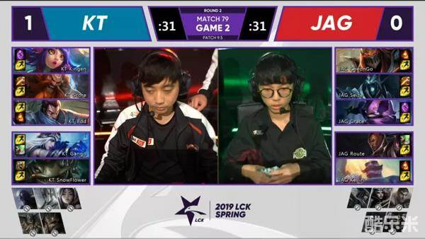 36分钟,KT拿下远古龙,同时击杀JAG打野,成功推下上下路高地;40分钟,JAG中路开团,但是妮蔻下路一路单带取得比赛胜利。