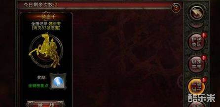 当我们第一次进入一骑当先这一个玩法的时候,我们需要做的就是尽可能的击杀更多波数的怪物,因为当你第二次挑战这一个玩法的时候,你就不是从第一波开始挑战了,而是在你之前通过的最高波数再减去五,就是你再进入这一个玩法时挑战的波数。