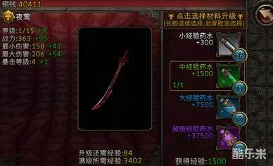 3、玩家可以在武器升级页面中看到武器升级带满级所需要的经验,来选择高品质的经验药水一下子将武器的等级升满,让玩家的伤害瞬间得到极大的提升。