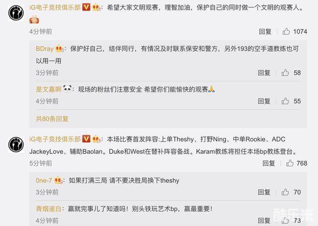 另外关于本次的比赛IG官方还表示希望大家文明观赛,理智加油,保护自己的同时做一个文明的观赛人。