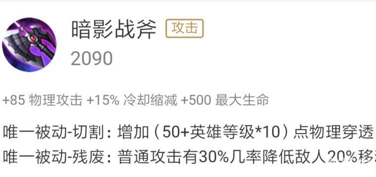 我们先分别来看一下游戏中典型的两件具有物理穿透的装备—暗影战斧、碎星锤