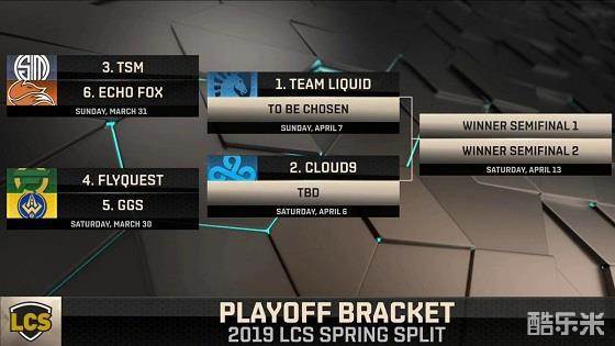 根据LCS赛制,TL与C9将直通季后赛半决赛。常规赛3到6名的TSM、FlyQuest、GGS、EF将会在第一轮追对厮杀。