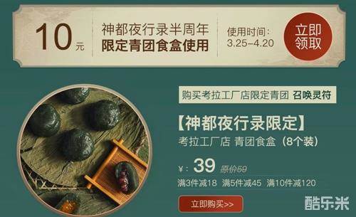 3月25日至4月30日期间,上网易考拉搜索“神都夜行录”或者截图扫描二维码访问活动页,即有机会免费获得神都夜行录半周年限定青团食盒。购买游戏同款青团食盒还有机会获得游戏唤灵符、青团食盒以及礼物礼包。