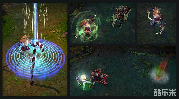 Q技能对命中单位都会有雪花飘落,W技能一眼便能看出跟圣诞相关,E技能同样有细微的雪花,大招和W是一样的风格,当然回城也有特效。