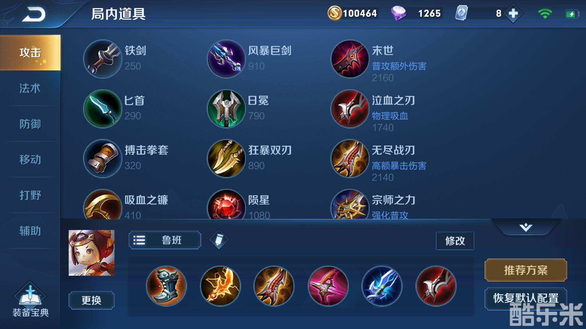 出装推荐:攻速鞋,电刀,无尽,破晓,名刀,吸血刀。