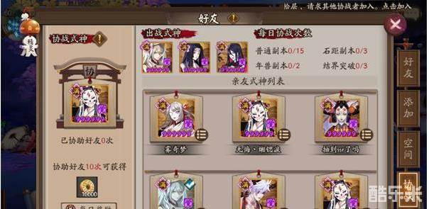 其三:亲密度。不得不说亲密度这个设计真是棒,有了足够的亲密度,双方都能有所收益(当然基本上是萌新受益)但如何利用萌新宝贵的体力最快获取一个大佬的亲友?最快的当然是组队刷,但也说了,萌新常苦于体力不够(怎么解决后文会讲)所以萌新在除开必要的单人剧情,尽量能组队都和大佬组队,不要羞涩,主动一点。除此之外的方法就很关键了,如果你的大佬是个凯子(不对,这好像…还是我)可以让他送你福袋(这招并并不通用看你交际能力吧)每天送友情点和百鬼都记得你的大腿。这样迅速到达一级亲友你就可以借他的式神去过魂9了(建议借花鸟卷挂机过,对自己练度要求最低)然后你就可以躺好等着大佬每天求你刷魂十了!(瞧把你给美的)