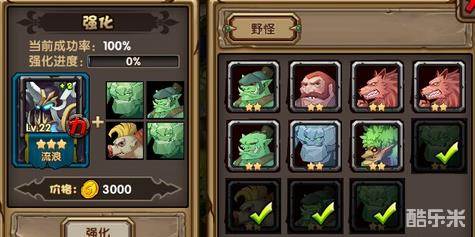 俗话说得好:“专注打野30年,一朝神技出深山。”野怪是强化英雄的必需资源,可以通过打专属副本、抽宝箱等途径获得。在酒馆抽卡或者开宝箱时都有几率获得野怪(关于酒馆宝箱,请留意酒馆下方的“商店”按钮,而且宝箱开出英雄和野怪的几率都很高)。另外在战役副本中专门为大家准备的打野副本“黑暗神殿”中,也可以掉落丰厚的野怪卡奖励——是的,野怪也是卡片资源,低星级野怪可以在“熔炉”中合成高级野怪,星级越高的野怪可以为英雄强化提供更高的成功率!