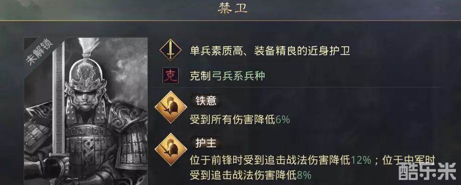 孙坚一般是作为前锋坦克而存在的,禁卫能使其受到所有的伤害降低6%,并且受到追击的伤害降低,进一步提高了孙坚的坦度。