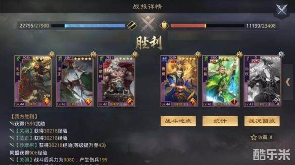 这样整体爆发对敌军大营位置威胁非常可怕,前锋沙摩柯的反击伤害和【落首箭】的威胁,大营XP关羽的自带战法配合【一骑当千】的爆炸伤害都是可以攻击到敌军大营的,法正属于本队发动机,拥有了【始计】可以提升稳定性和整体爆发能力。