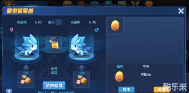 接下来写具体操作,之前说了,找一个天赋比较高的精灵练到40级进化,然后找一个同样高天赋的精灵(进化)与它孵化。