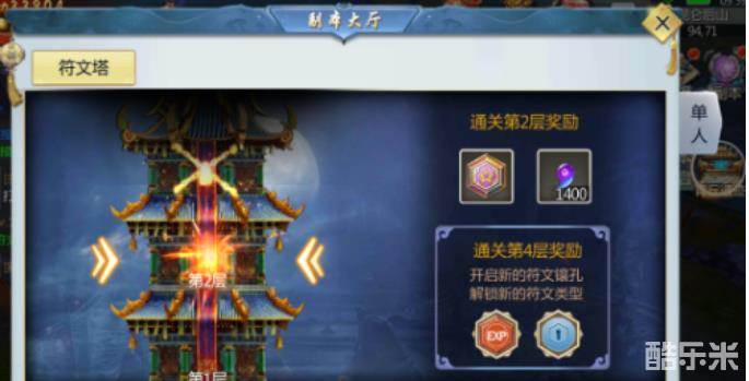 玩家可以通过右上角的“副本”进入“符文塔”副本;