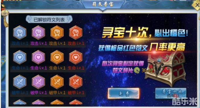 玩家可以通过“寻宝”下的符文寻宝页签来抽取符文,每天有一次免费抽取的机会;
