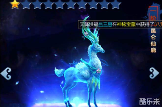 坐骑进阶以后,为角色加成属性也会有所提升,目前小编是1阶3星的昆仑仙鹿,属性如下: