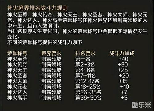 而且最大的不同是,玩家之间可以利用新上的神火境界战力排行榜中查看自己的位置,根据位置的不同,获得的称号也不同。