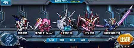由坦克、输出和辅助组成的“铁三角”组合,同时具备防御、进攻和治疗能力,在多种作战环境中都能展现出不俗的战斗力,因而被奉为“经典”。敢达决战同样引入了这一概念,将机体分为前排、中排、后排三个位置。小伙伴们可根据机体属性,组建一支攻守兼备的战队。用敢达、京宝梵、巨剑型强袭敢达等坦克肉盾扛住敌军攻势,以Z敢达、自由敢达、正义敢达等伤害输出提供强劲火力,最后让当前唯一的“奶妈”机体渣古勇士(Live)保障续航能力,这样的战斗小队,足以让任何对手胆寒!机体组合攻略。