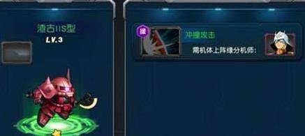 首先是机师和机体的缘分系统。以敢达0079中人气机师夏亚为例,他所驾驶的红色渣古ⅡS夏亚专用型,只要配合机师夏亚,即可使用缘分技能“冲撞攻击”,更好的展示“红色彗星的实力”。