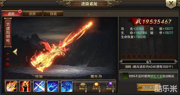 弓箭可以通过使用弓箭进阶丹进行提升,等级越高可以解锁弓箭技能,并且获得更多的属性加成。