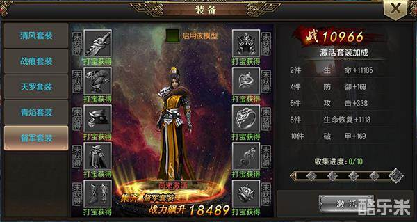 套装是玩家在游戏中可以直接获得并搜集的主要装备,每一套装备一共10件,每搜集两件可激活一次套装属性,获得对应的套装加成,目前游戏一共有20阶套装可供玩家搜集并自由切换造型。