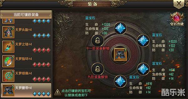 此外,每一件装备最多可以安装6颗宝石,宝石能够提供额外的属性加成,宝石等级越高,所获得的加成越多。