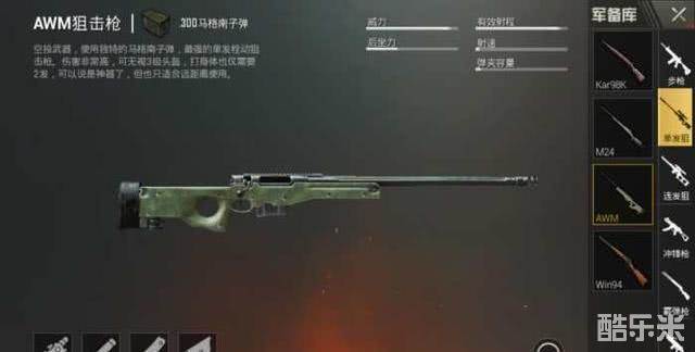 第三名就是我们非常厉害的狙击枪,这把狙击枪在房间里是搜不到的,这把枪是只有在空投装备里面才可以找到,这把枪的名字,想必大家现在都知道了,那就是AWM。这把枪的伤害在刺激战场中是数一数二的。而且如果你用这把枪来打对方脑袋的话,他可以无视对方的三级头,一枪就可以打爆,但是要说的就是这把狙击枪你必须要有非常好的枪法才可以运用起来。为什么这么说呢?