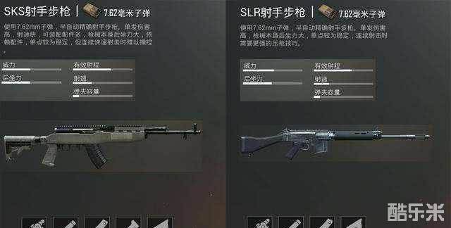 第四SKS与SLR射手步枪:射手步枪曾经在吃鸡阻击武器使用率充当很长时间王者,新手老手都最爱,上手容易。