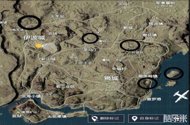 首先,针对单排来说,落点要尽量避免人员密集的资源点。例如别墅这个资源点,地形狭小、竞争激烈,往往十余人降落最终只有一人可以从别墅内成功走出,容错率太低。所以小编认为在沙漠地图可以选择从优秀的打野点出发,配合打野点处刷新的载具,往往能在保证安全的前提下搜集到足够的装备。以下五个打野点资源相对丰富,可以做为落点参考:拖车厂上方、垃圾站上方、圣马丁上方、黑斑羚镇下方和地图右侧小岛。