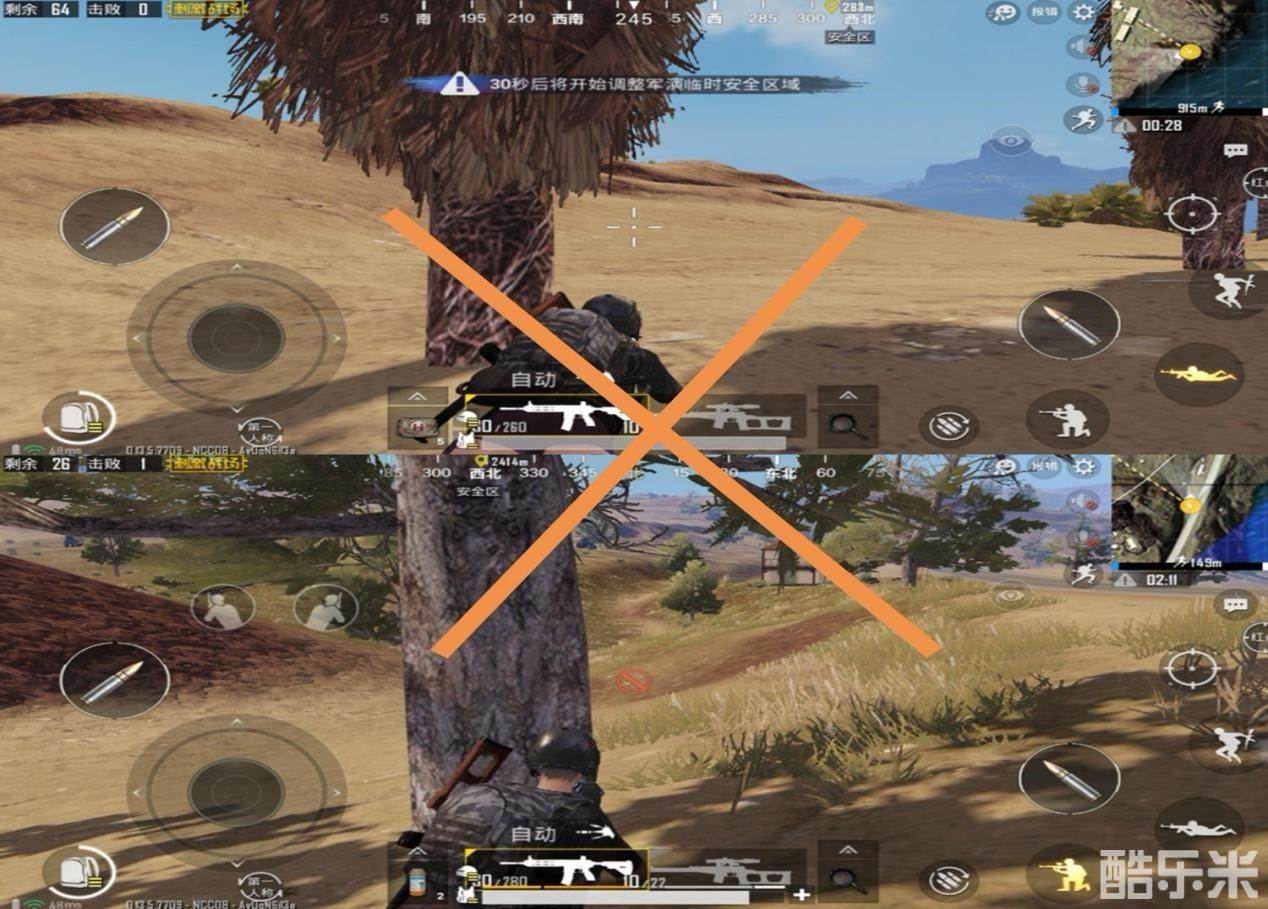 两不选则是指:①不选树后;②不选低坡。因为大树和低坡往往无法将身体完全掩藏,敌人一旦身处高坡,一眼就能发现躲在树后和低坡的你,十分不利。