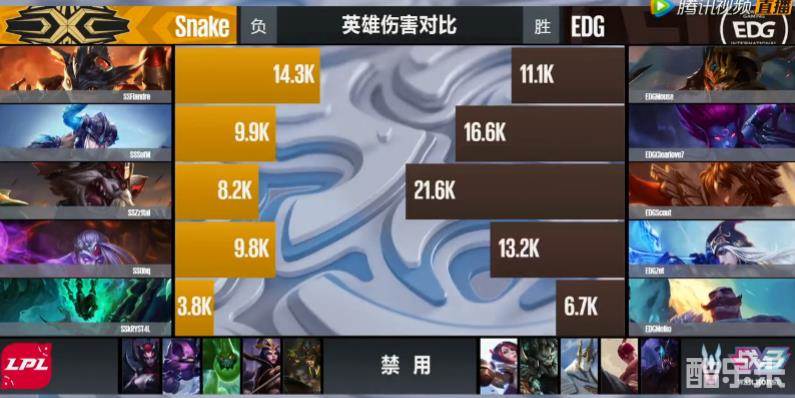 但是,Snake主动的带节奏,很好的缓解了第一波团失利所造成的影响,慢慢将经济拉回了一些。但是,他们选择在21分钟直接打大龙,被EDG包夹在大龙坑内,厂长寡妇抢下大龙,EDG顺势完成了一波0换4的团战,彻底掌握住了胜势。