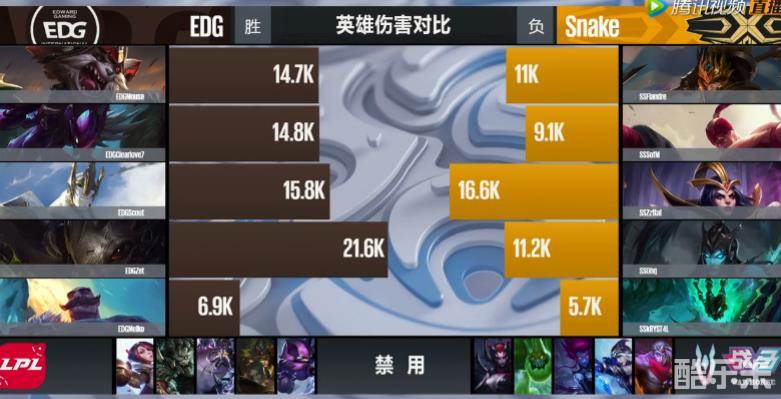 EDG很好的滚起雪球,最终,在中路河道处,EDG再度通过一波团战击杀了Snake四人,随后推掉Snake基地,成功拿下了首局比赛的胜利。