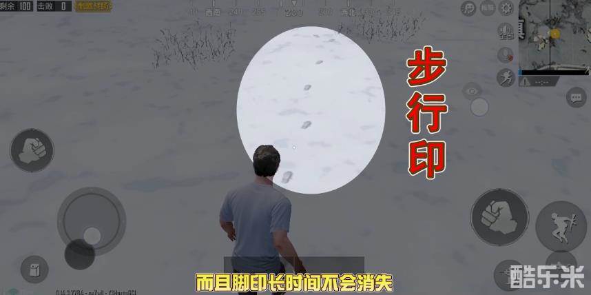 那么,在雪地图如何才能预防敌人通过脚印追踪过来呢?其实很简单,因为脚印只会出现在雪地上,所以当你跑毒的时候,尽量选择草地,最好就是一边跳一边跑,看到石头也可以踩着石头前进,这样敌人就很难判断你的移动方向了,就算敌人有耐心花费大量的时间来观察,但是毒圈也不会给他时间的。所以呀,道路千万条,安全第一条,追人不跑毒,队友两行泪。