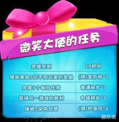 1.“微笑大使”的任务和奖励每天都会重置;