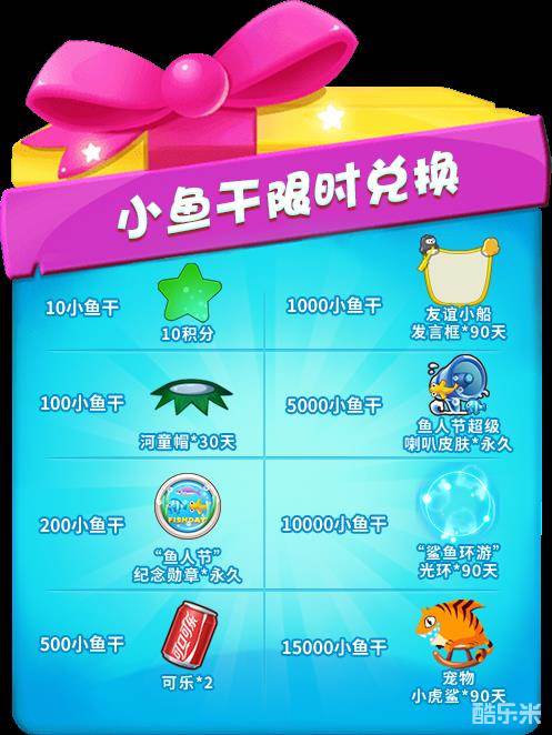 并且,你还可以使用小鱼干可进行精美礼品的兑换,每种奖励都可重复兑换!
