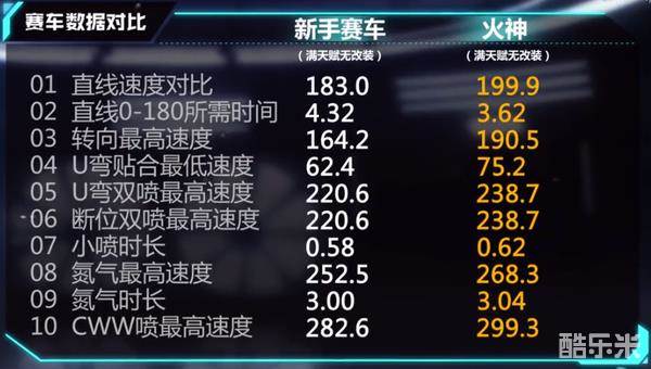 从赛车的六维性能图可以看出,火神的耐撞、加速和转向能力极为优秀,这使得赛车受到撞击时影响较小,过弯时拉车头更加灵活,使用氮气和小喷时提速更快。