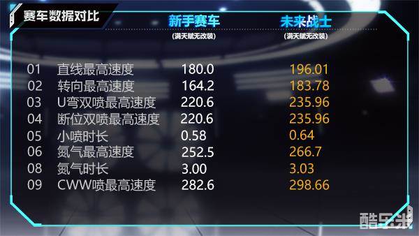 白色的车身加之炫酷有力的车尾设计,每一次的超越都如闪电一样迅捷,寒光一闪,引领骑行之巅。未来战士各项属性比较均衡,其中漂移和耐撞能力较为突出。