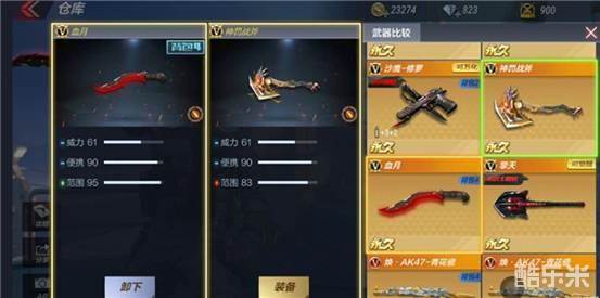 上图所示的就是尼泊尔-血月与另外一把英雄级武器神罚战斧的属性对比情况,大家可以看到血月在威力和便携度方面和神罚战斧相同,而且攻击范围相较于神罚战斧来说要高的多,单从数据面板来看,绝对是尼泊尔-血月完胜了。