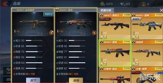 将这把武器与M4系列的另一把英雄级武器M4A1-黑龙对比后,我们可以发现这两把武器的属性基本类似,仅仅在精准度以及稳定度方面,黑龙的属性要相对好一些,不过实际上影响并不算特别的大。但是光看属性面板是远远不够的,具体还是要看这把武器的实战表现如何了。