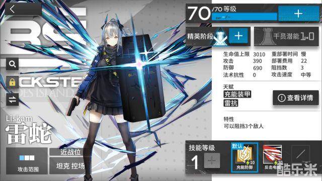 雷蛇,是一个非常嗲娘的重装坦克角色,但同时她的输出也不俗,最重要的是她还有两格的攻击距离的重装角色,她在可以强化自身防御攻击的同时在精英化之后还能给周围队友提供技力提升的buff,在早期玩家缺少前排的时候,雷蛇是最佳的选择,泛用性极高,可以用到后期,一个拥有重装第二攻击力的女人,夫复何求?