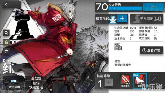 红,特种型角色,这个游戏里的特种角色是非常特殊的存在,可以以很少的消耗上场,并且再上场冷却也很短,她有着上场一段时间造成群体控制眩晕和伤害的效果,她有着可以打出百分比伤害的天赋,像此刻一样有伤害又有控制,使用非常灵活,对新人来说可能不好操作使用,但是可以留作后期培养。