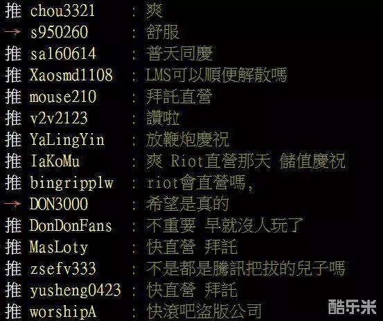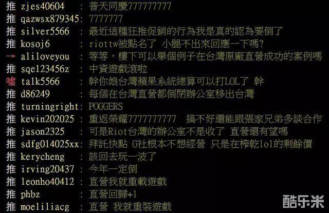 在这个消息爆料出来后,台服玩家也对此进行了激烈的讨论,大家只能用7777来表示内心的喜悦,看来湾湾玩家在自家赛区联赛办得不好的情况下,还密切关注着LPL的比赛。在被誉为“阴间论坛”的地方玩家表示巴不得G社早点滚,看来G社不得人心已经很久了。