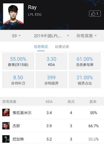 Ray的经历着实有些坎坷,从网友的角度来看,RAY有着两种形态。前一种Ray在赛场上大杀四方,后一种RAY在赛场上长期迷路,曾经的Ray意气风发,被下放后远赴北美重头开始,但是始终郁郁不得志,患上了抑郁症,之后回到LPL加盟了EDG,从Ray常规赛的比赛来看,他是一名潜力巨大的选手,操作上限是很高的。