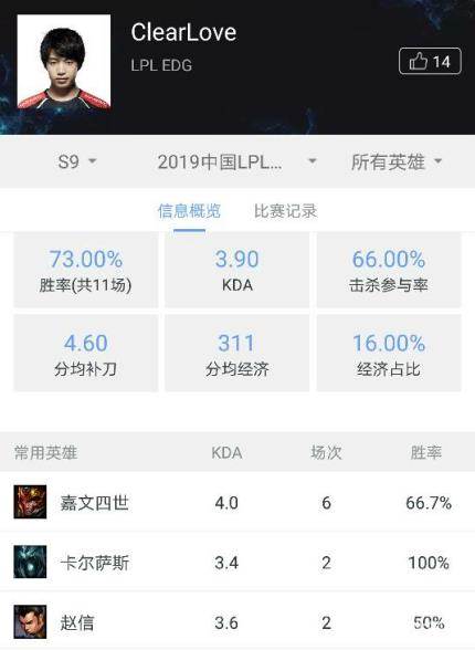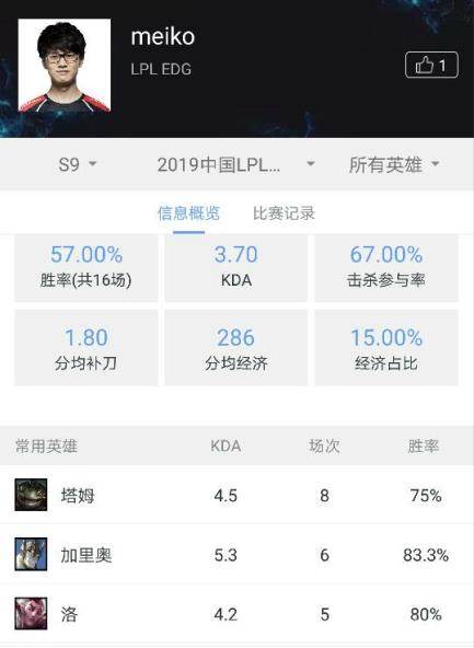 电竞交际花,自从厂长回归之后,Meiko肩上的担子少了很多,最近比赛的操作也是直线上升,一手锤石使的是出神入化,一场比赛如果输了,通常锅不会扣在Meiko的身上。此前Meiko担任的是指挥的位置,可能因为分神无暇顾及到自己的操作上,所以世界赛上也有各种另人诟病的操作,就按照目前的状态继续保持,EDG下路的综合实力定会更上一层楼。