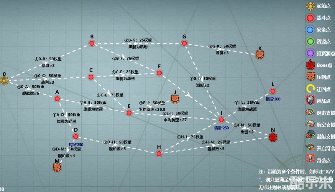 在舰队满足以航空母舰为旗舰,且不携带战列舰、战列巡洋舰,击败Ex-14位于N点的敌人并取得A胜及以上的评价。