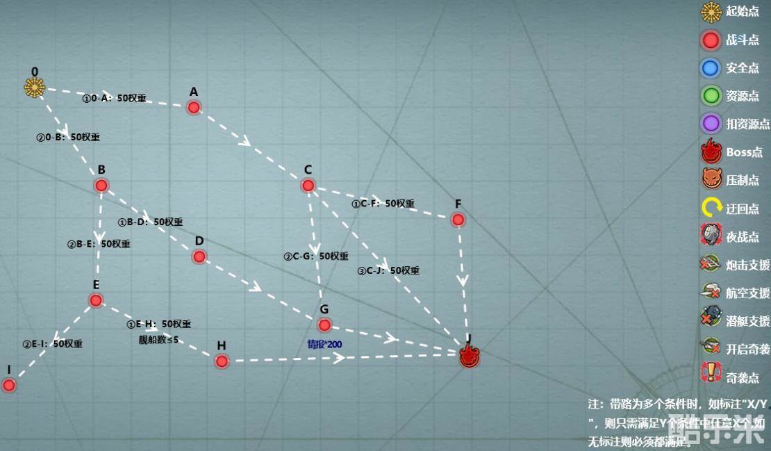 在舰队满足仅携带驱逐舰、轻巡洋舰击败Ex-8位于J点的敌人并取得S胜及以上的评价。